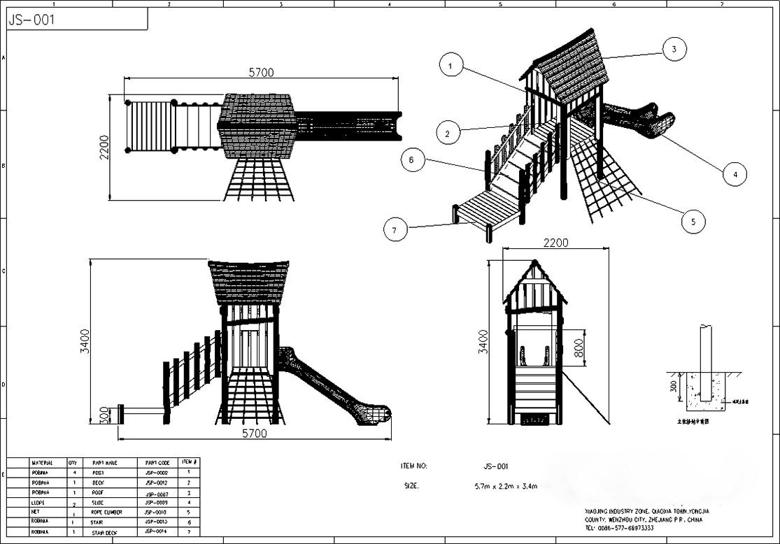 | Главный Материал | 1) Пластик: LLDPE, ротационная форма, защита от ультрафиолетовых лучей, антистатичность, защита от трещин. Пищевой пластик. 2) Металл: оцинкованная сталь 3) Веревка: φ16 мм с внутренней сталью 4) деревянный: высококачественная древесина робинии. 5) Винт: нержавеющая сталь 304 |